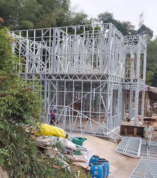 还有一点,所有轻钢别墅的材料都是提前在轻钢别墅厂家的生产车间生产好,然后在运输到施工现场进行施工,具有标准化,工业化特点。